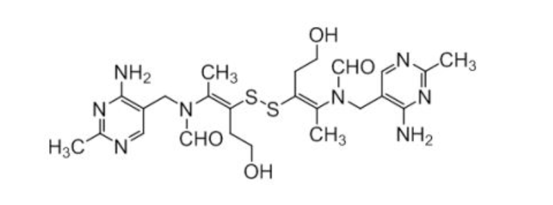 | N,N'-((2Z,2'Z)-disulfanediylbis(5-hydroxypent-2-ene-3,2-diyl))bis(N-((4-amino-2-methylpyrimidin-5-yl)methyl)formamide) (Thaimine Disulfide) | 67-16-3 | |
